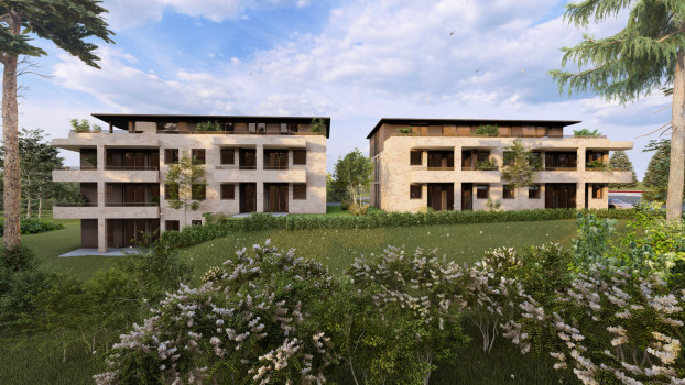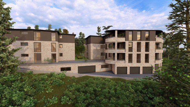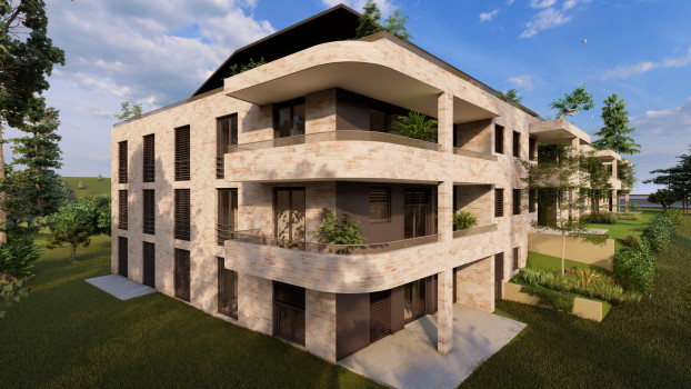 Jede Wohneinheit verfügt über einen Balkon oder eine Terrasse mit Privatgarten, von denen aus man einen herrlichen Blick auf die umliegende Landschaft genießen kann.